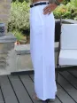 Pantalon en lin blanc à pinces avec bouton, très agréable à porter.