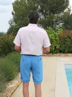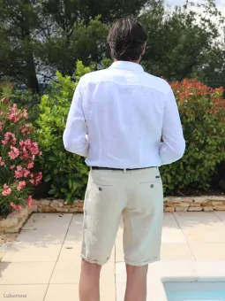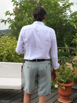 Of course, when we talk about summer clothing for men, we mainly think of linen Bermuda shorts. Luberone makes its men's Bermuda shorts from high quality European flax in Portugal. Very light fabrics, French seams (folded) as well as controlled dyes guarantee an elegant and relaxed look. Luberone offers you the widest choice of colours and all our linen shorts as well as all our cotton shorts are available in 8 sizes.
