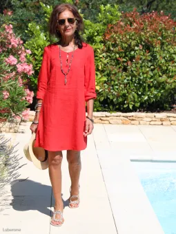 Black linen tunic is pocketless. It gives a very nice body shape.